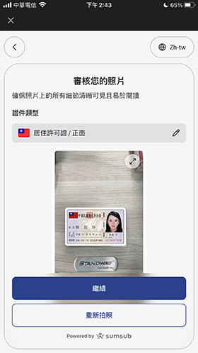 透過 App 指引拍攝清晰的 ARC 正反面照片