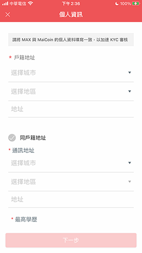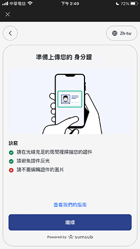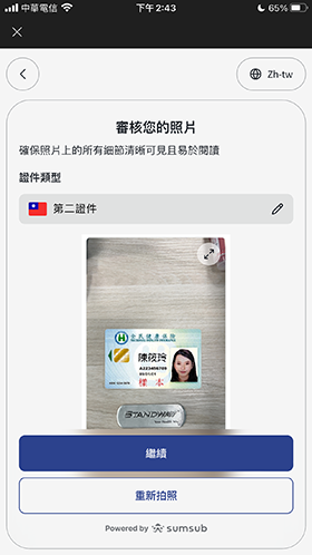 完成身分驗證 (Lv.1) (簡介) 為符合台灣洗錢防制法規及保障資產安全,您必須完成身分驗證才能使用入金與交易功能。