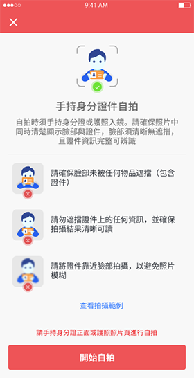 手持身分證自拍,確保發證日期清晰可見,且手部未遮擋臉部五官或證件號碼