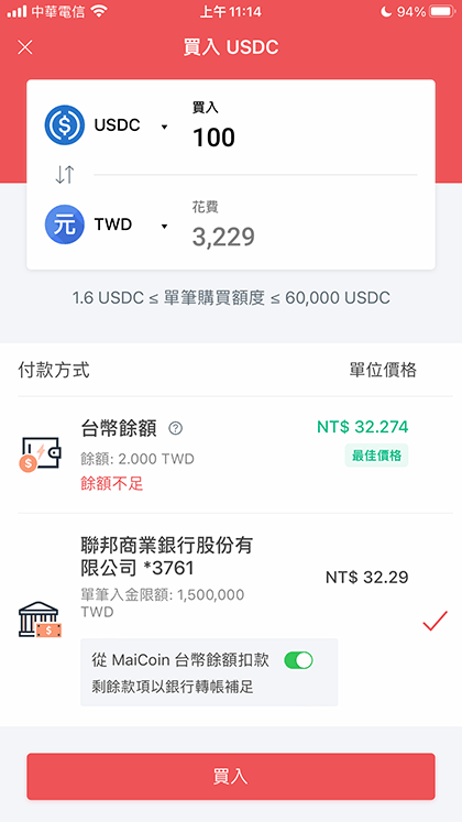 Buy Bitcoin on Maicoin Step 4